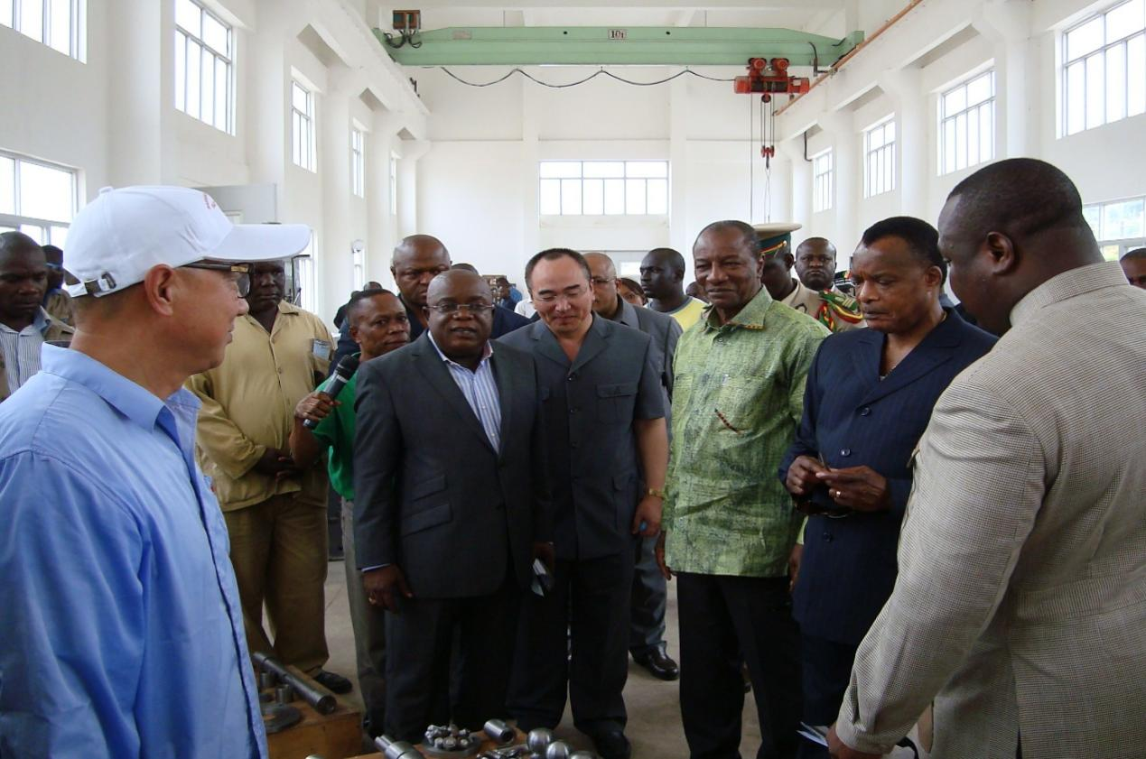 2011年6月陪同刚果总统萨苏、几内亚总统孔戴参观刚果(布)英布鲁水电站