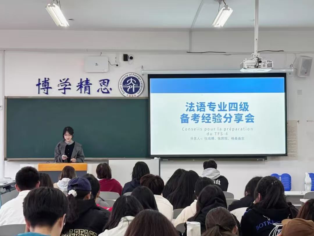 我院2023级张凯悦、格桑曲宗、任洪博三名同学在2025年全国法语专四统考中均取得“优秀”成绩,本期分享会特别邀请他们结合亲身备考经历,从题型分析、做题方法到实用资源推荐,为同学们带来了系统而实用的备考指导,现场干货满满。